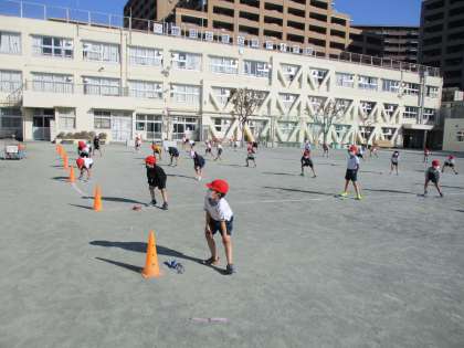 2月2日(水)1年生体育「なわとび、ボール遊び」