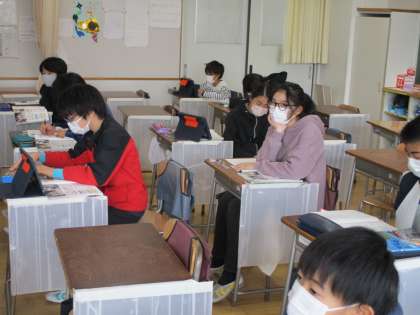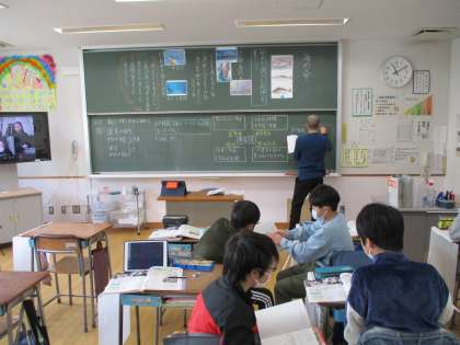 6年生の社会を参観しました。今日の学習では「戦後の改革」について学習しました。男女に選挙権も戦後の改革です。今の小学校が6年間、中学校が3年間になったのも戦後など、調べていくとたくさんあります。授業ではオンラインで参加している仲間も発表していました。