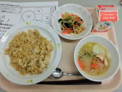 今日は、ビビンバ、牛乳、ナムル、トックスープです。