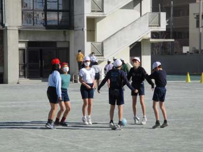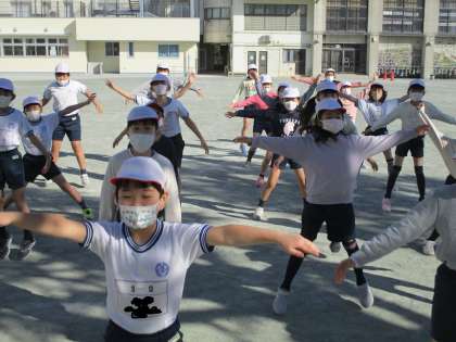 青空のもと体育の授業に励んでいます。各学年によって取り組んでいる学習内容は違いますが、運動量の確保に努めています。服を着ても寒い冬は、体を動かして身体の内側から温めることが体調管理にもつながります。オンライン学習に参加している子どもたちも、是非、できる範囲で家でできる体力づくりに挑戦してみてください。(例)ストレッチ、ゆっくり腕や足をのばすだけでも身体は温まりますよ。