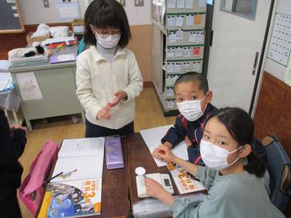 3年生の理科では「ものの重さを調べよう」という学習をしています。今日は、スプーン1杯の塩と砂糖の重さを知らべました。塩も砂糖も白で、なかなか見分けがつきませんが重さが違います。授業では予想を立てて、実験をしました。さて、結果はどうなったのでしょうか?楽しく学習できました。