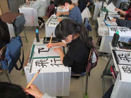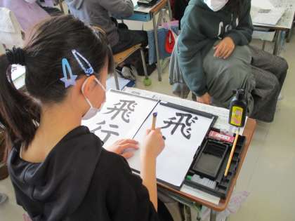 5年生の書写では「飛行」を書きました。「飛」の漢字は筆を使わなくとも難しいですが、さすが5年生です。一字一字丁寧に書くことができました。姿勢も素晴らしい仲間が多いです。