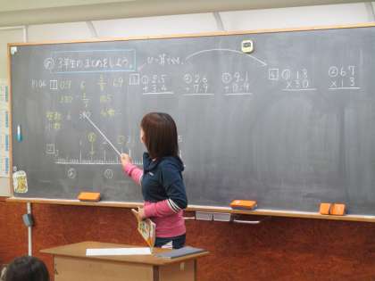 3年生の教室では「算数のまとめ」に励んでいました。整数、小数、分数、小数のたし算やひき算など3年生で学習したことを振り返っていました。まとめをすると「理解しているところと苦手にしているところ」がはっきりとわかります。「3年生の学習は3年生のうちに!」を合言葉に復習してほしいと思います。