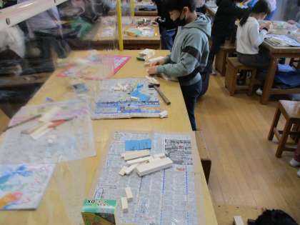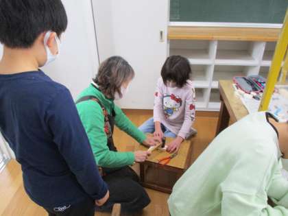 2月22日(火)3年生図工「釘打ちトントン」