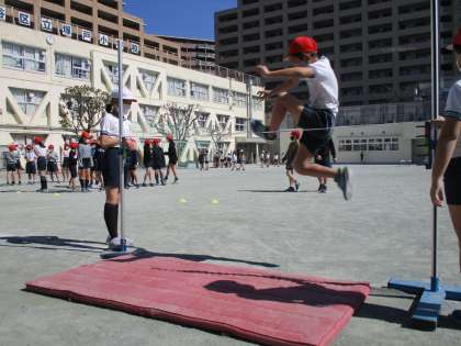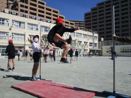 2月28日(月)4年生体育「高跳び、ハードル走」