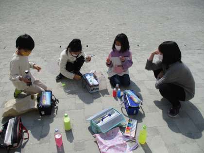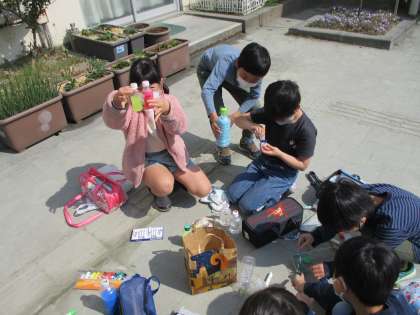 図工の学習で色水を作っていました。絵の具を使って、色水の作り方を学び活動を楽しみました。色鮮やかな色水、とても素敵でした。