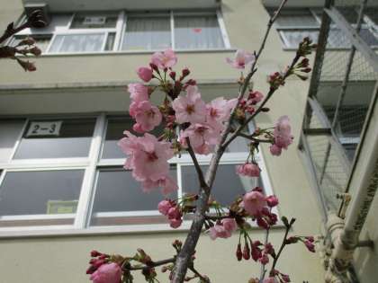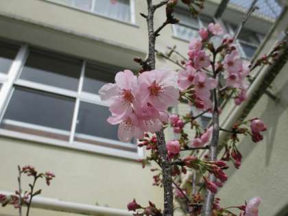 昨年、開校146周年記念で植えた桜「陽光」が見事に花を咲かせました。濃い目のピンク色が特徴です。枝や幹も太く、大きく育っています。今は一分咲です。卒業式の日、陽光の前で写真を撮るのもいいと思います。春を告げる桜、心が癒されます。