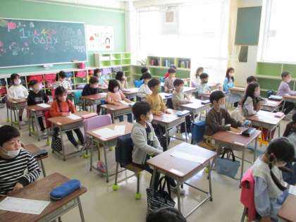 入学から3日目、授業も始まりました。1年生の子どもたちにとって、長時間、椅子に座って授業を受けることはなかなか難しいことです。しかし、必ず慣れます。どんなことでも最初が肝心です。1年生の成長が楽しみです。