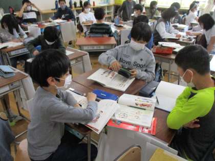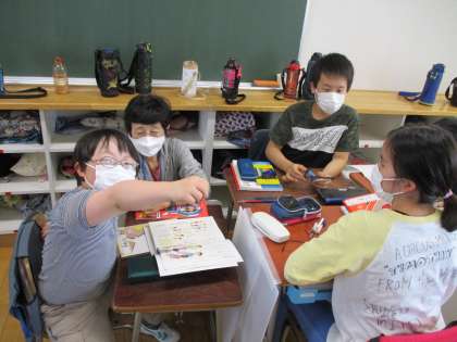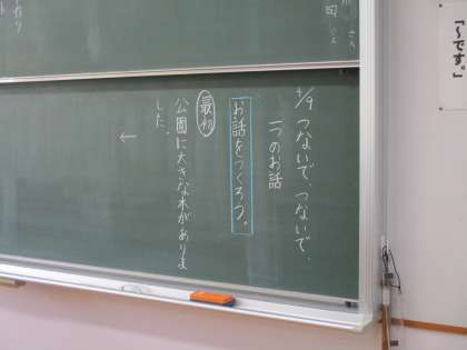 グループで一つのお話をつくりました。いろいろな言葉が飛び交い、楽しいお話、不思議なお話ができました。いい雰囲気で学習に取り組むことができました。