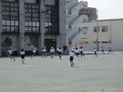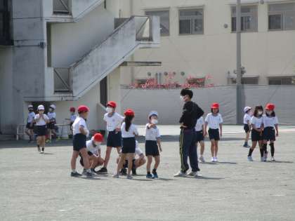3年生の体育では「かけっこ、おに遊び」を行いました。また、50mを全力で走り抜ける練習もしました。5月になると体力テストがあり「50m走」があります。全力、そして走り抜けることを大事にしてください。頑張れ!