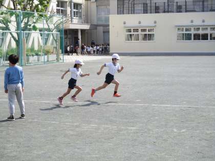 4月19日(水)3年生体育「かけっこ、おに遊び」