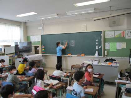 2年生教室を参観しました。新出漢字に取り組んでいました。座り方がとてもよく、先生の話をしっかり聞くことができ感心しました。指で空書きをしてから、鉛筆で書きました。丁寧に丁寧に書くことを続けてほしいと思います、