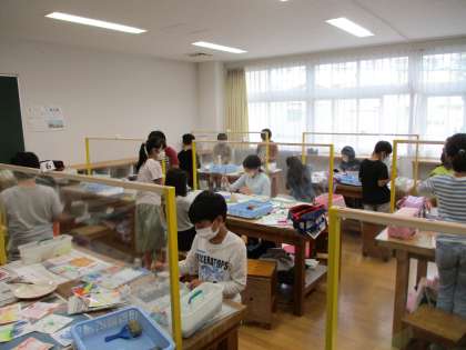 4月26日(火)4年生図工「絵の具で遊んで自分色紙」
