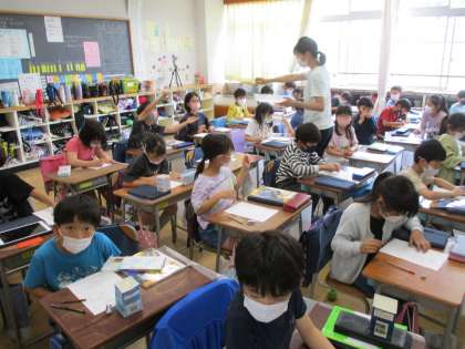 3年生の理科で「ホウセンカの種の観察」を行いました。理科は3年生から始まる教科です。先生が一人ずつ丁寧に「種」を配り始めました。子どもたちは目を丸くしました。なぜなら、種がとっても小さいからです。これだけで、子どもたちにとって驚きです、不思議です。子どもたちはワークシートに「色」「大きさ」「形」「におい」「もよう」「触った感じ」などを書きました。私たち教師は、子どもたちに「驚き!」や「不思議さ!」「なぜ?」をたくさん提供していきたいです。