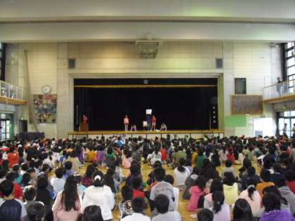 今日の児童集会はエコ委員会が担当しました。子どもたちはエコ委員会のみなさんから出題されるクイズを解きながら、身の回りのエコについて見つめ直していたようです。