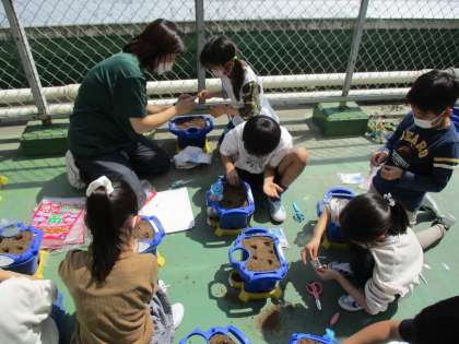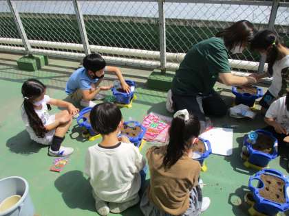 1年生はあさがお、2年生はトマトを育てます。トマトの種も非常に小さいです。今日は2年生が種を植えました。しっかり成長して、立派なトマトがなるよう楽しみにしています。