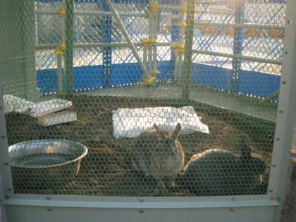 仮の飼育小屋ができ、ウサギとニワトリは新しい家に引っ越しました。新しい家をどう感じているでしょうか。狭くなったけど、早く慣れてほしいです。子ども達ものぞいてみてください。