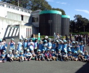 10時30分、昆虫館の前で集合写真です。太陽の光でまぶしかったですが、ゆり組さんもばら組さんも、みんな笑顔で、ハイポーズ。