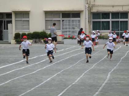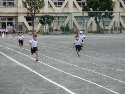 1年生の体育では「かけっこ」に取り組みました。担任の先生の指示をよく聞き活動を楽しみました。そして、50m走のタイムを測りました。1年生にとって、真っすぐに走ることも、ゴールを走り抜けることなど難しいことです。頑張りました!