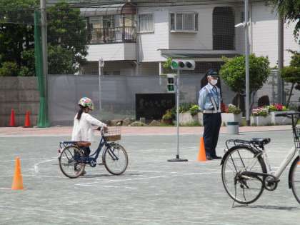 2,3校時に3年生の交通安全教室を行い、安全な自転車の乗り方について学習しました。交通安全に気を付け、信号や横断歩道など自転車のルールなどを守って自転車に乗ってほしいと思います。暑い中、保護者の皆さんには多大なるご協力をいただきました。ありがとうございました。