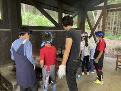 友達と話し合い、協力し合いながら、火の勢いをしっかり調整していました。