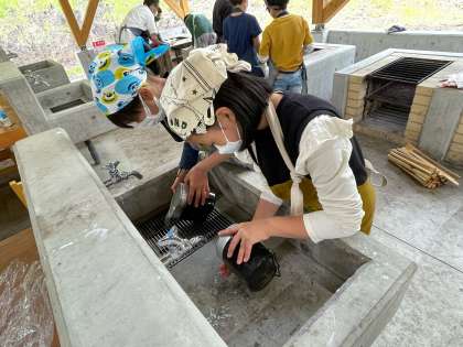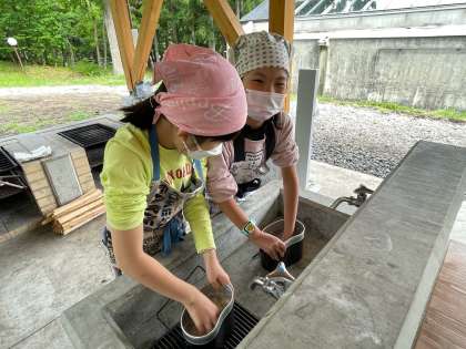 お米もとぎました。飯ごうでたくご飯は難しかったけど、みんなでがんばりました。