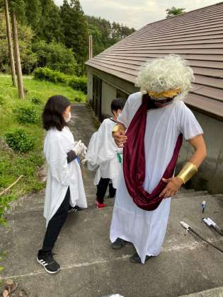 カレーを食べた後はキャンプファイヤーです。これまでキャンプファイヤー実行委員の子どもたちが準備を重ねてきました。今日もみんなが集まる前から打ち合わせをしてキャンプファイヤーの成功のために努力しました。