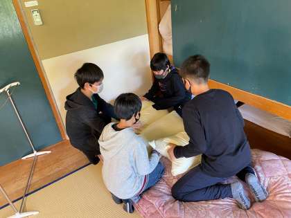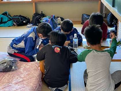 ビレジを出発する前に、1日目に学んだことや感想を振り返りカードに書きました。部屋の片付けをみんなで協力して行いました。上ばきをそろえることも意識して生活しました。