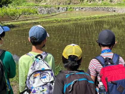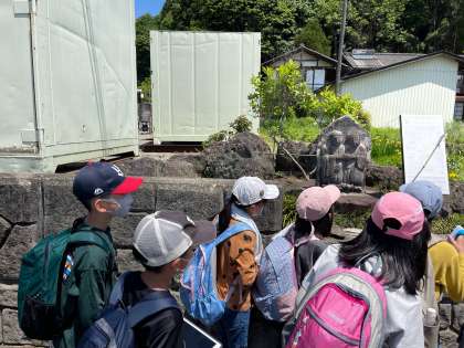 川場の棚田(田んぼ)や地蔵など、興味深く見学していました。