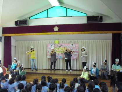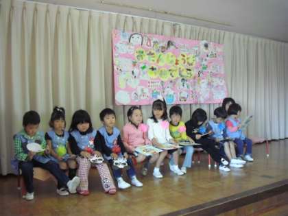 10月31日に、幼稚園では、10月の誕生会を行いました。おめでとう。お楽しみは、塚戸小学校の「おたまじゃくし」のお母さんたちが、素敵な合奏をしてくれました。ありがとうございました。