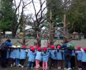 10時50分、次はさる山です。赤ちゃんざるもいて、子どもたちは、その可愛さにじっと見いっています。