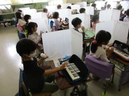 6月9日(木)1年生音楽「鍵盤ハーモニカ」