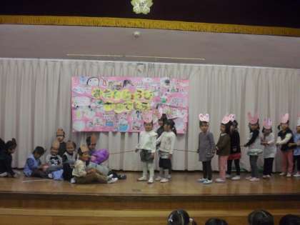 11月の誕生日の人は、11人でした。おめでとう。園長先生も11月生まれなので、みんなにお祝いしてもらいました。ありがとう。お楽しみはちゅうりっぷ組です。おいも掘りの楽しいお話の劇遊びでした。