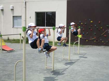 2年生の体育では鉄棒に取り組んでいます。鉄棒というと逆上がりと連想する方も多いのではないでしょうか?2年生の段階では「自分の腕や力で鉄棒に乗ったり、ぶら下がったりすること」を大切にしています。今日は3秒間、鉄棒にぶら下がる運動をしました。とても立派でした。