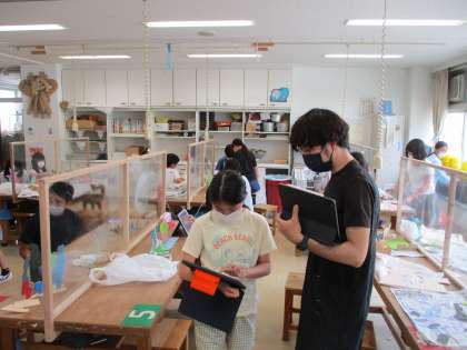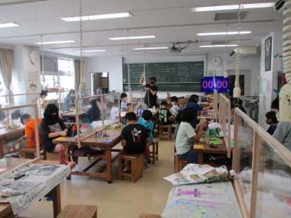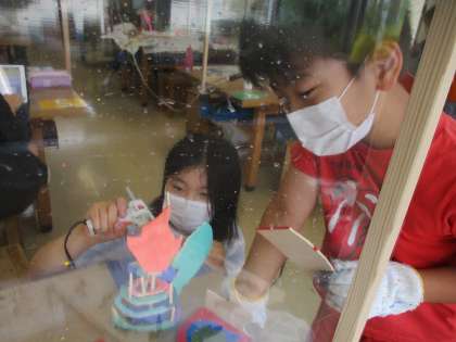 5年生の図工では「糸のこドライブ」を学習しています。電動糸のこぎりを使い、いろいろな形に切って、切った形から想像を広げ、色を塗ったり、組み合わせをしたりして完成させました。とてもカラフルな作品、素晴らしいです。