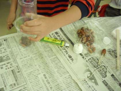 11月15日(火)どんぐりを使って遊ぶものをつくっています(1年生)