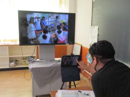 校長先生が、塚戸小の子どもたちの頑張りを紹介し、振り返っていました。