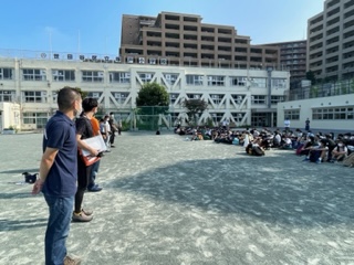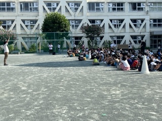 7月23日、6年生の日光林間学園第1日目です。暑い日ですが青空が広がりました。出発式を子どもたちが進行しました。みんな一生懸命に式に参加し、6年生らしさのすばらしさを感じました。