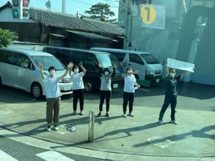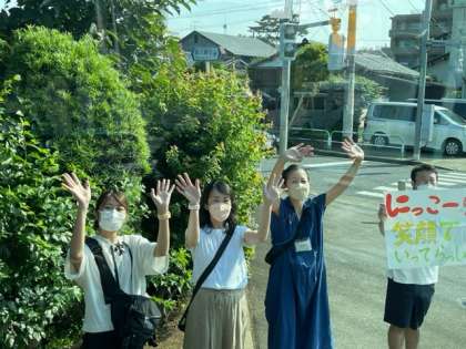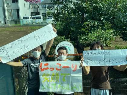 子どもたちがたちを見送る教職員。メッセージも届きました。