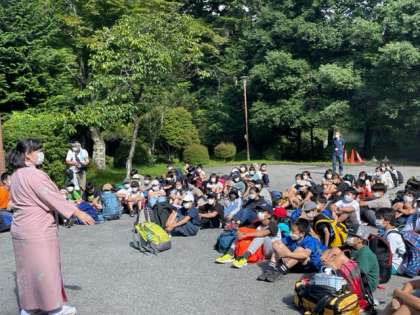 予定通り宿舎に着きました。宿舎の皆様に感謝を伝えることを大切にしながら開園式を行いました。おかみさんへ「よろしくお願いします」の気持ちをしっかり伝えた6年生、立派です。