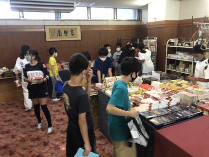 班のメンバーと声をかけあって荷物整理、お風呂の準備、避難訓練などをしたあとは、入浴とお土産購入です。いろいろほしくなる気持ちをぐっとがまんして選んでいました。家族のこと、おじいちゃんやおばあちゃんのこと、お世話になっている人たちのことなどを思いながら考えている子もたくさんいました。やさしい気持ちが伝わってきました。