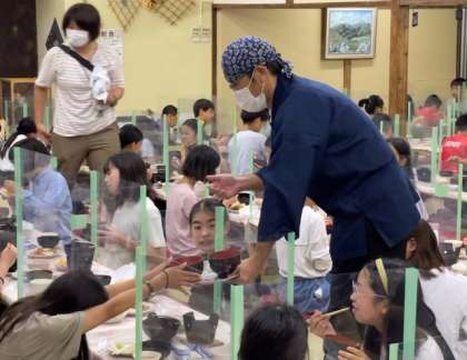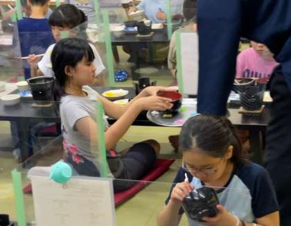 6年生のすてきなところを食事の時間にもたくさん見つけました。くつのそろえ方もその一つです。おかわりの時もお礼の言葉を添えていました。お茶碗を両手で受け取る所作には感謝の気持ちが込められているように感じました。