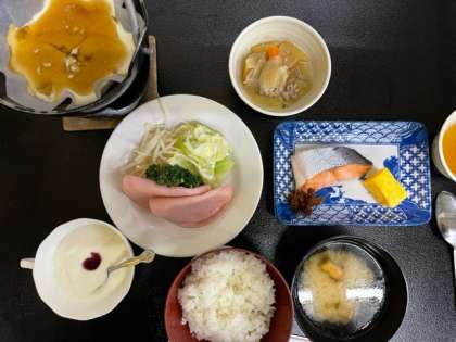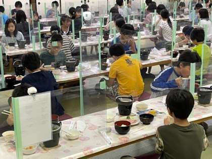 7時。食事の時間です。いつも5分前行動ができる6年生。元気の源になる朝食をしっかりいただきました。その場で料理していただいたお豆腐は手作りだそうです。湯葉の佃煮、お味噌汁にはかんぴょうと日光名産の食材も並びました。