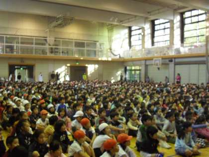 今日の朝の児童集会は、放送委員会の発表でした。放送委員会の仕事を演技とクイズで表わし、仕事の内容を発表しました。子供たちは楽しそうに聞いていました。