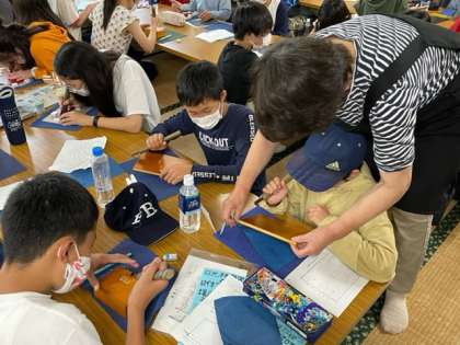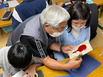 ひっかき刀の扱い方を丁寧に日光彫の先生方が教えてくださいました。