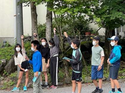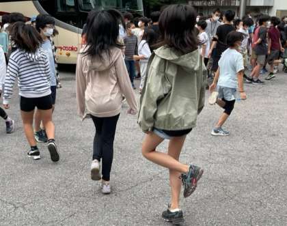日光林間学園第3日目のスタートです。起床後、朝の支度と帰りの準備を進めています。6時30分には広場に集まり、朝会を行いました。最後の日になります。みんなで元気の気合いを入れたり、学校で取り組んでいるステップダンスを踊ったりしました。