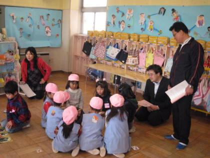 今日の5校時、塚戸幼稚園の年長さんと塚戸小学校の1年生(今日は、1年1組)の交流の授業研究会がありました。先生方が、幼児と児童の交流を見て、そのよさや子どもの育ちを話し合いました。先生方が、交流のよさを勉強するよい機会になりました。