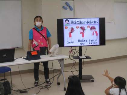 保健指導ではケガの簡単な処置について学習しました。鼻血の時は、どのように対処するのかなどについて一人一人考えていました。