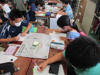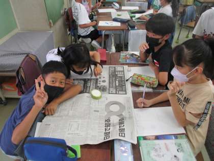 4年生の理科でヘチマの観察をしました。写真を見ていただければわかりますが、まだまだ「みずみずしいヘチマ」です。今日はノートに観察しました。これから水分が抜けていくとどのようになるのか?子どもたちは予想を立てていました。