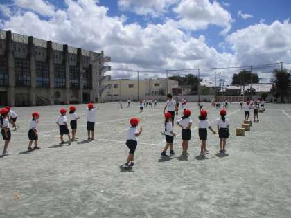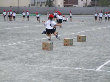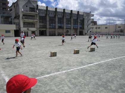 1年生の体育では「多様な動き」に挑戦しました。段ボールをまたいで走ったり、小型ミニハードルを越えて走ったり、じゃんけんを入れてゲーム性をもたせて走ったり、、、。子どもたちは多様な動きをして学びました。